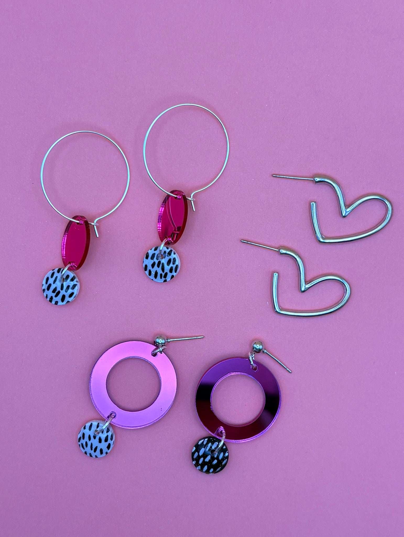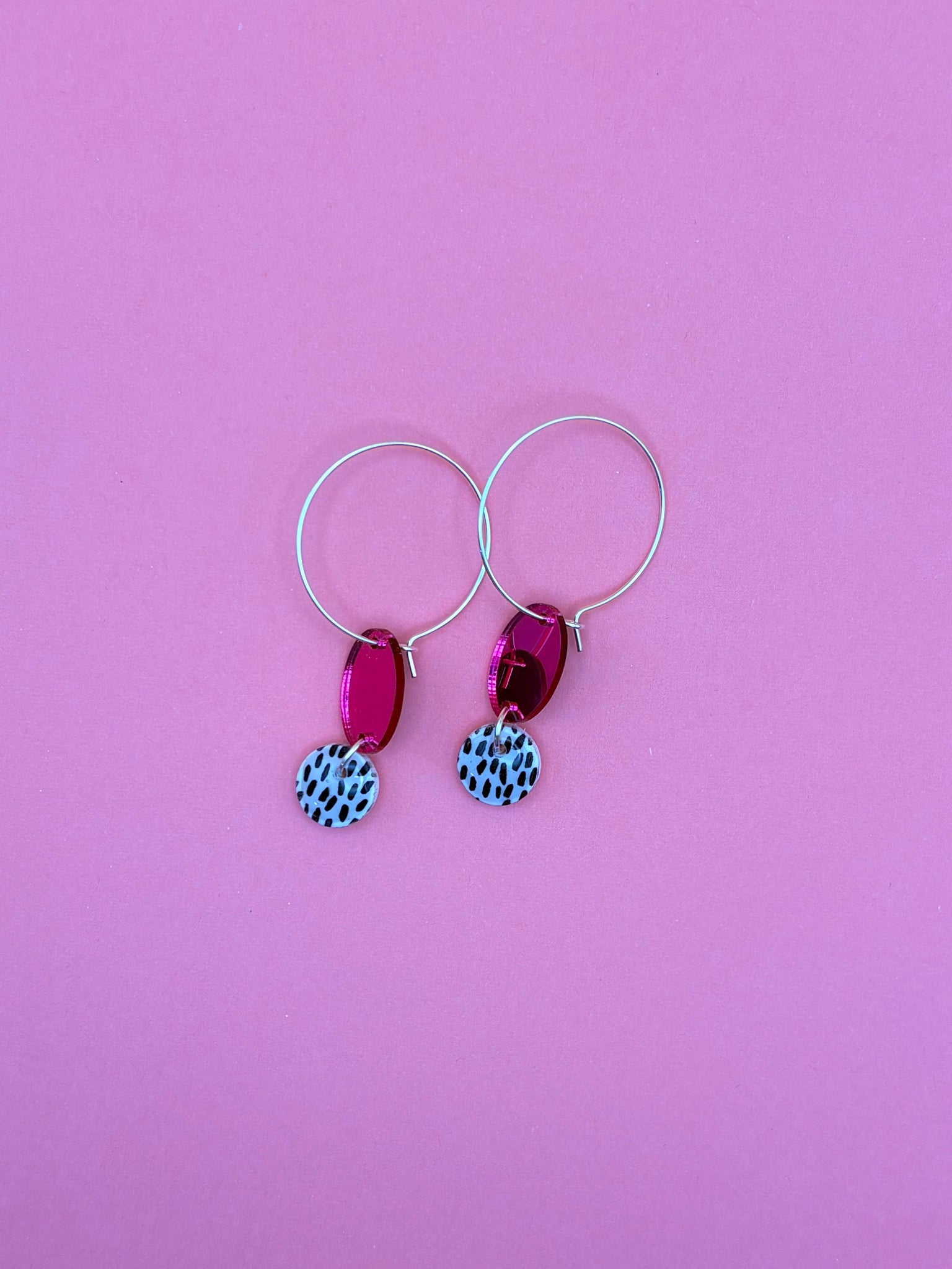 Pop of pink, polka dots, and all the fun! These earrings are here to help you shine with bold style and playful charm, making them the perfect accessory for any glow-up moment.
