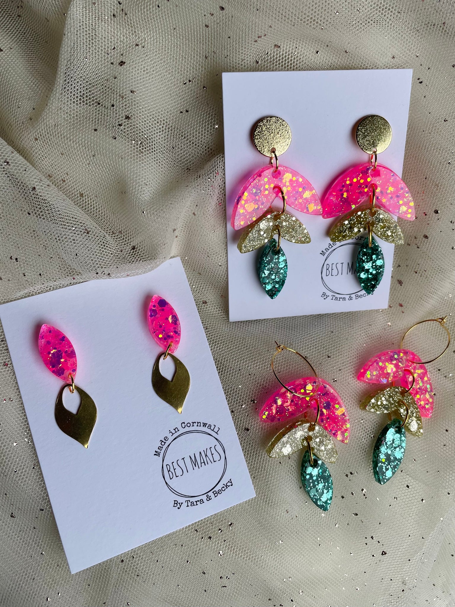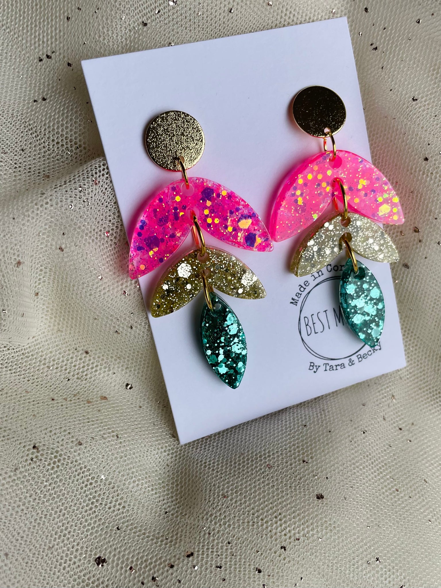 Shine bright this festive season with our handmade resin sparkle earrings! Bold, glittery, and totally festive — the ultimate show-stopper from our Christmas collection.
